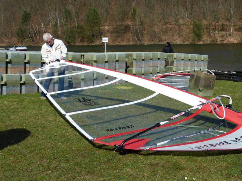 Durch ein Gurtband sind die Camber fixiert, dies soll ver-hindern das sie vom Mast ab-springen.
